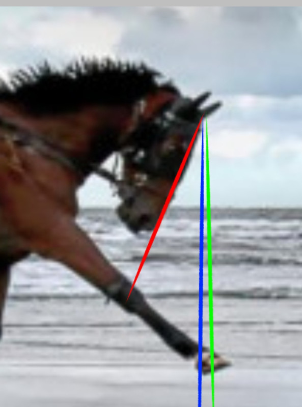 Désolée pour le " placement de produit " mais je suis sur tel et je n'arrive pas à retrouver d'article francophone. Mais au final l'impact d'un cheval en arrière de la verticale arrive hyper tôt, cf ces sources la