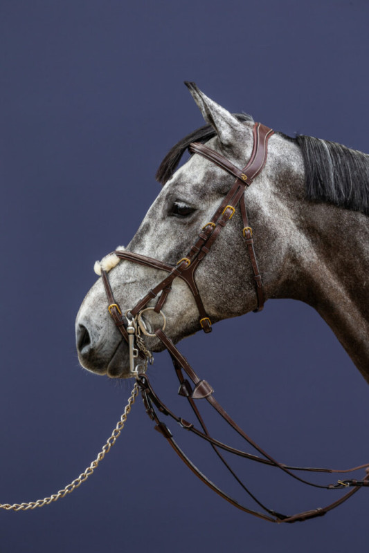 Parce qu’une bride ne devrait pas être utilisée avec autre chose qu’une muserolle française. Parce qu’une bride avec une muserolle croisée cela met forcément les mors l’un contre l’autre et c’est illogique.
