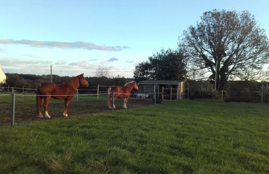 Maintenant, l'hiver, elles sont à côté de la maison dans un paddock stabilisé d'environ 80m carré avec à disposition deux abris sur 42m carrés. Avec un minimum de trois sorties /semaines dans un paddock d'herbe, sans boue, environ 2h/sortie, leur laissant la possibilité de galoper, trotter, se rouler et bien entendu manger de l'herbe !
