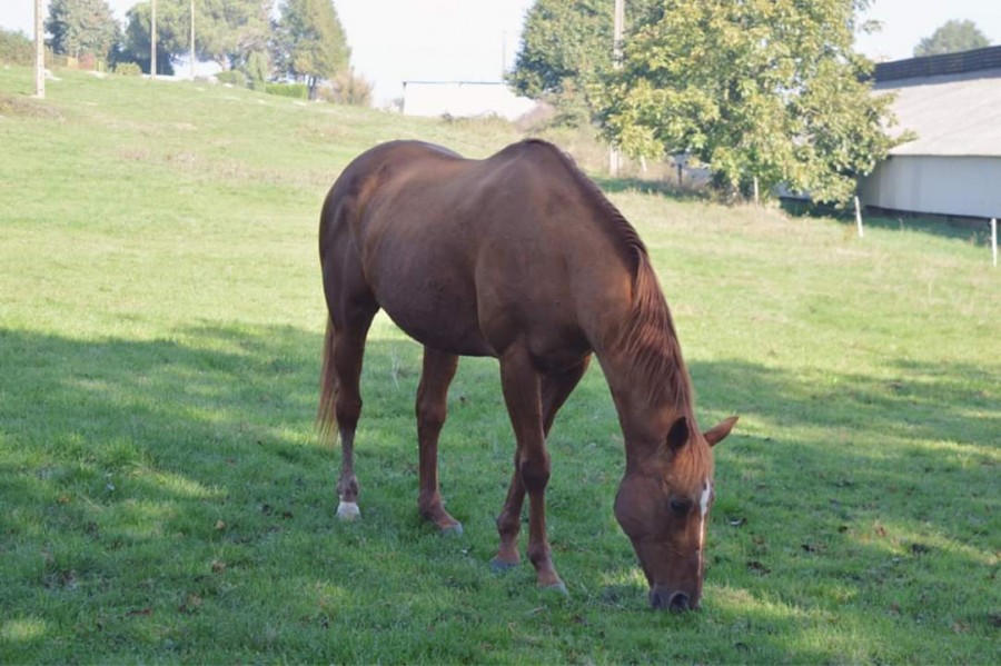 Il sort en paddock avec 2 copains, et l'été ils sont 5 dans la pâture.