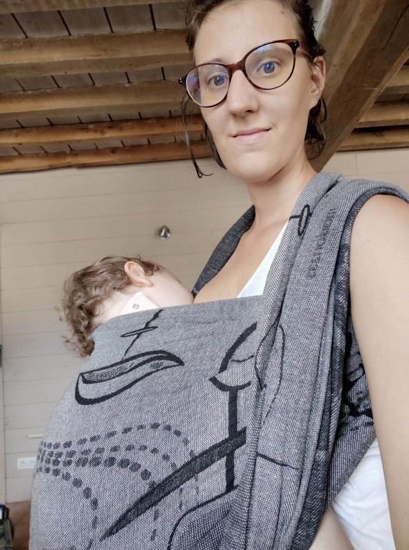 Je cherchais une photo en sling mais j'ai pas de tête à peu près potable ^^' mais le principe est le même en écharpe :)