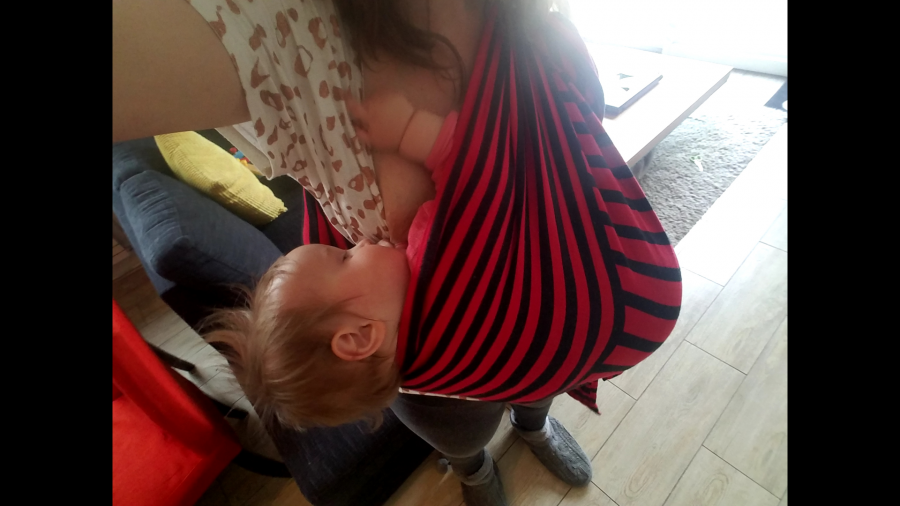 En écharpe de portage ou en porte bébé (physiologique), la maman peut allaiter son enfant n’importe où et dans la plus grande discrétion, pratique si on est pudique ! :)