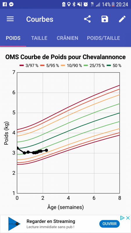 chtitesudiste Voilà la courbe OMS de ton bébé. Il n'y a vraiment rien d'alarmant.