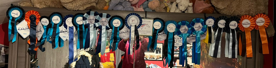 de mon coté vu le peu de fois entre 2018 et 2025 ou j'ai été récompensé en concours tous tiennent sur une ficelle accroché en haut de mon armoire (bon 2 flots et 2 plaques n'y sont plus car j'ai pensé a autres choses pour les mettre un peu plus en valeur ^^') mais voila comment je les expose actuellement...