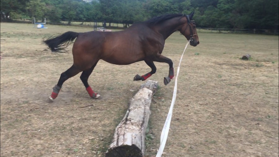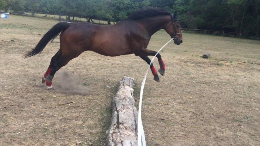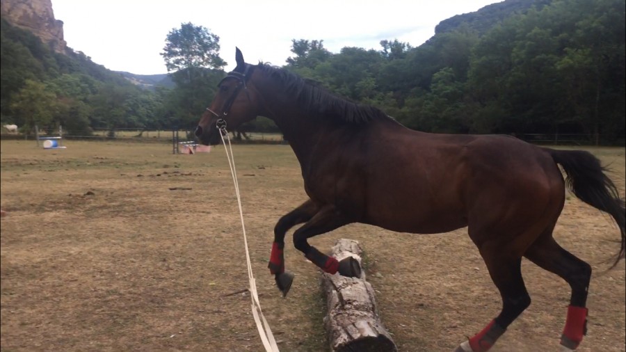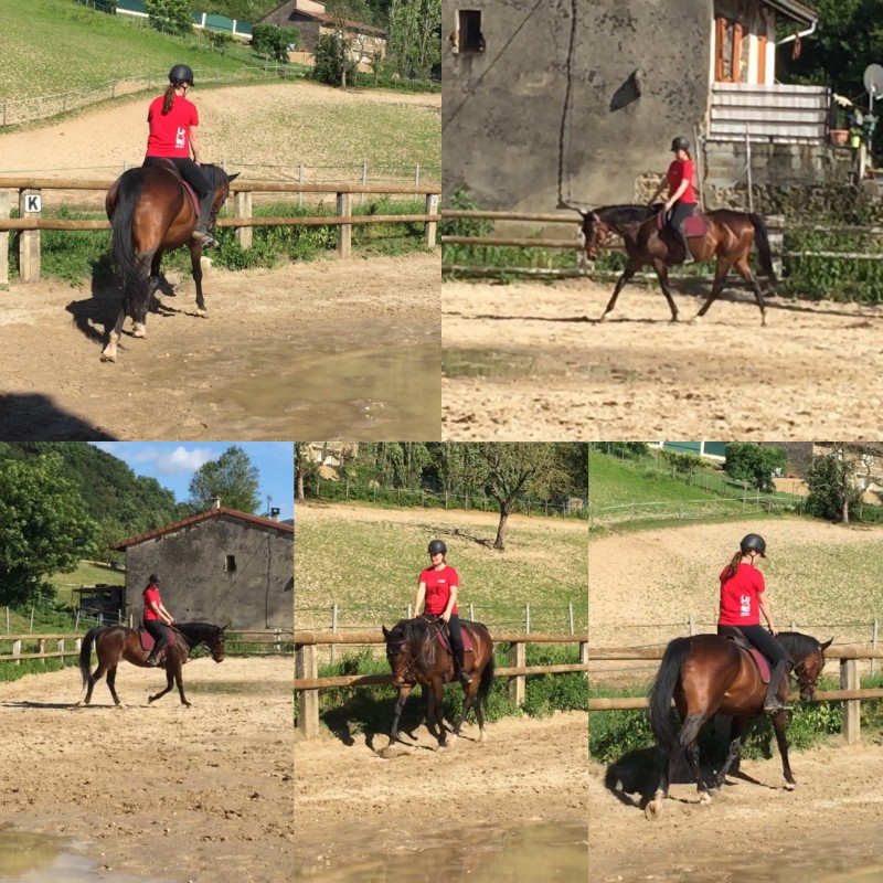 Beaucoup de travail en longe ou en longues rênes, j'avoue que après entre mettre fêler une vertèbre, abîmer un ligament croisé et les séances de rodéo, j’apprends le travail monté sur le cross avec son z'olie terrain moitié herbes grillées moitié cailloux et les copains en liberté dessus (le cross sert aussi de pension aux chevaux de proprio)