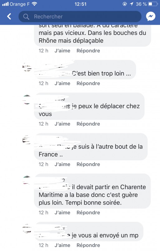 J’ai demander par « curiosité » s’il y’avait Des chevaux à confier dans le 60/76/80 ...j’ai 2 réponses de personnes qui m’ont proposer dans le 53 et un dans le 64 ,j’ai décliné ces offres puis j’ai relancer la publication d’un « Up! » et c’est la qu’elle a commenté... je lui est proposer de parler en mp pour lui demander des infos sur son cheval et ensuite lui expliquer que j’etait a l’autre bout de la France ,à 900kilometre ,malgré cela sa ne la dérange pas ...