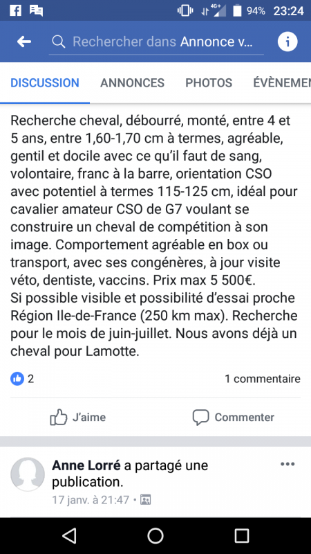 Je suis ce sujet avec intérêt depuis le début et j'ai plusieurs remarques à faire. Pour moi, les fautes sont partagées entre éleveurs et particuliers. Généralement, les éleveurs reprochent (à raison) aux particuliers ( dans le sens non déclaré pro) qui font naitre plusieurs poulains à l'année de siphonner le marché et de faire de la concurrence déloyale. D'un autre côté, les particuliers reprochent à certains éleveurs de tout faire pour vendre leurs produits quitte à mentir ou tout du moins embellir la réalité.