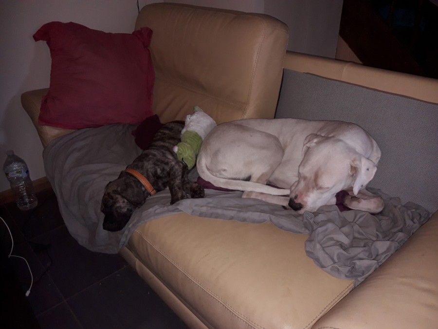 Depuis Fury partage notre vie, ça a été très dur au départ car c'est une chienne avec un passé pas facile, elle avait peur du moindre bruit, partait en panique, se planquait dans des endroits improbable... Par contre elle est d'une gentillesse, elle ne nous a jamais grogné, jamais sur le véto n'ont plus, elle est ultra bonne patte. Elle est protectrice, écoute au doigt et a l'oeil. Bref un amour.