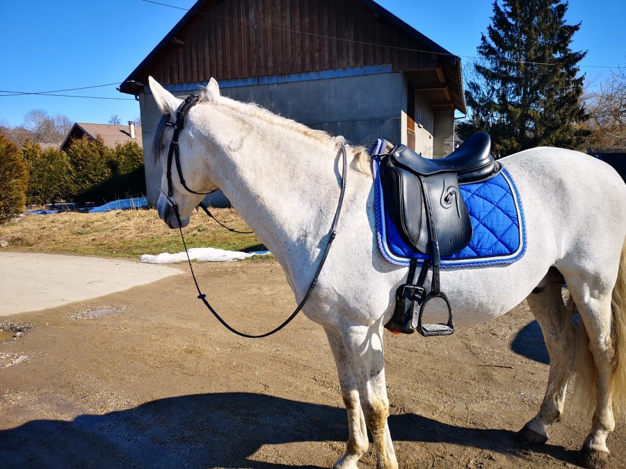 Au début j'ai dû allonger mes étriers car les taquets de ma selle me gênaient. Puis je m'y suis habituée et j'avoue que j'étais très bien dans cette selle. Sauf que mes maux de dos étaient toujours bien présents (je souffre de sciatique chronique, j'ai une hernie discale et un dos peu souple).