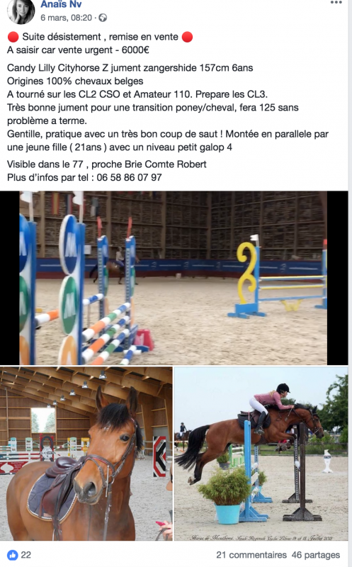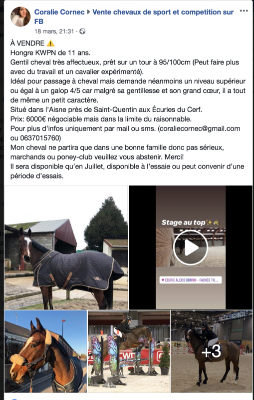 Et pour la plupart les chevaux proposés n'étant ni en annonce sur LBC ni même sur le dit groupe FB (des fois c'est totalement incohérent).