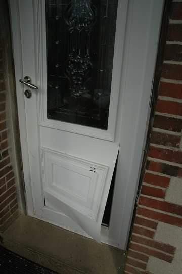 Et là je m'approche de ma porté d'entrée ... alors non il n'a pas du tout compris comment ouvrir une porte, la défoncer c'est mieux ...