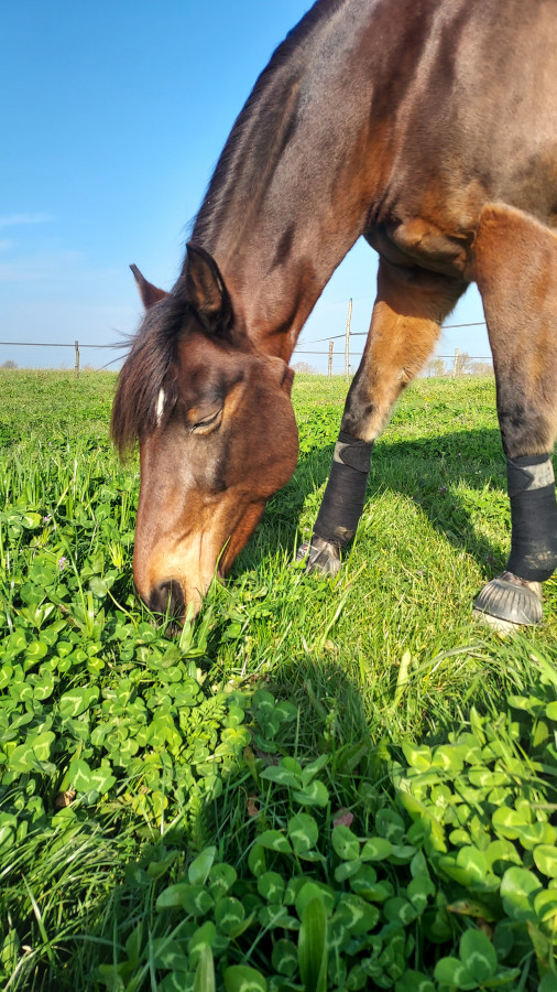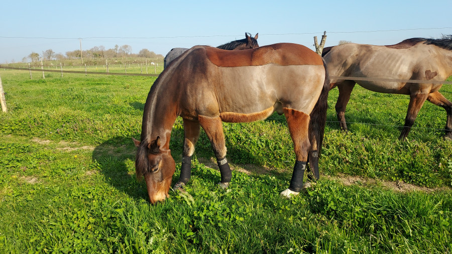 Cela va faire 8 ans donc, que Quazac vit dans une écurie de proprio, au pré, en troupeau. Ceux qui l'ont connu à l'époque du second centre équestre ne le reconnaîtraient plus aujourd’hui. Il est méconnaissable tant physiquement que mentalement. Il a toujours ce petit côté odieux indécrottable, il faut le vouvoyer, mais c'est Quazac, c'est aussi pour ça qu'on l'aime finalement !