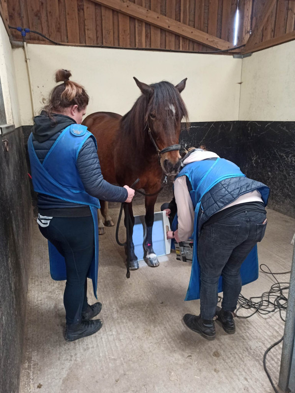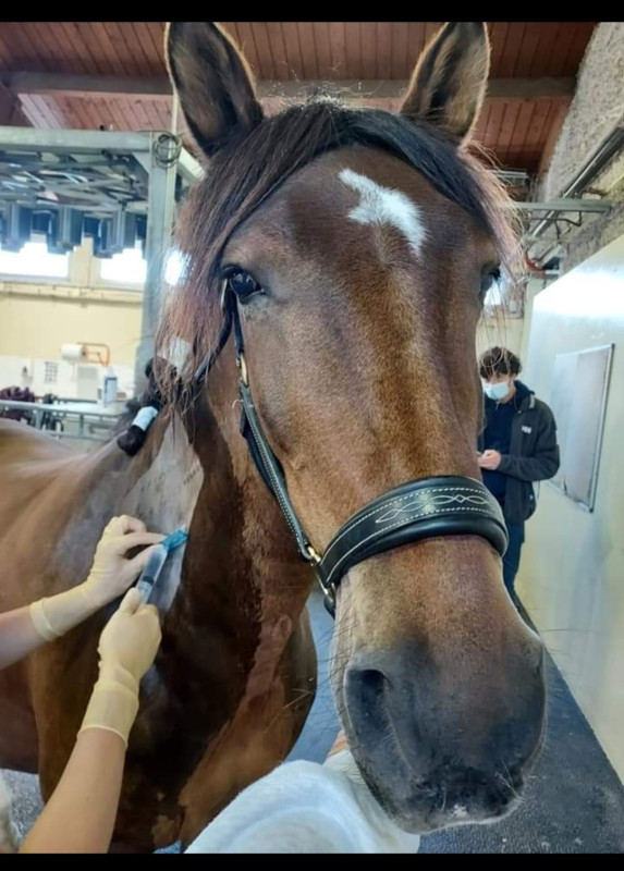 L'objectif : savoir si c'est bien l'arthrose comme je le pense qui le fait boiter ou si c'est autre chose, sait-on jamais. Savoir également s'il n'est pas définitivement temps d'arrêter de le monter, puisque le dernier Tildren n'a pas bien fonctionné, et qu'il montre pas mal de signes de douleurs (Mais bizarrement JAMAIS au moment du sellage / montoir).