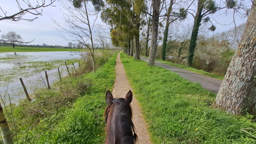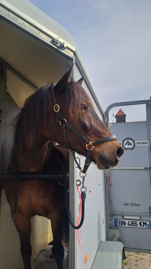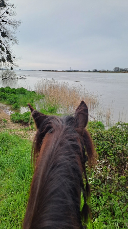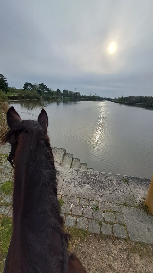 Comme il adore se promener et découvrir de nouveaux endroits, avec une copine on prend régulièrement le van pour aller dans des endroits différents... Hier ont était au Canal de la Martinière, au niveau d'une écluse qui donne sur la Loire... Il etait tout content et curieux ! J'ai fait 30min à pieds et il etait en pleine forme donc je suis montée pour le reste, 100% au pas, il etait nickel.