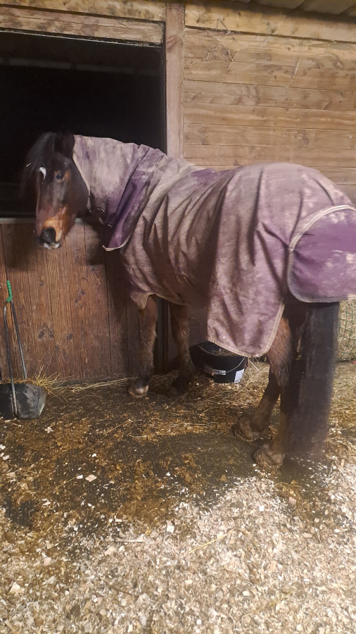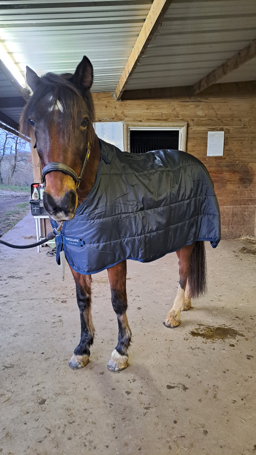 Le Père Noël l'a gâté avec un liner pour mettre sous sa couverture Horseware, et une couverture de marcheur (Pour les balades à pied et la longe)