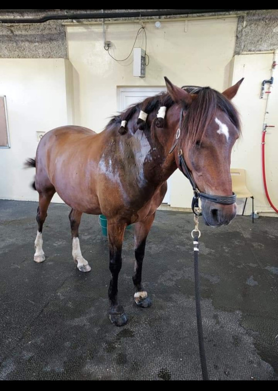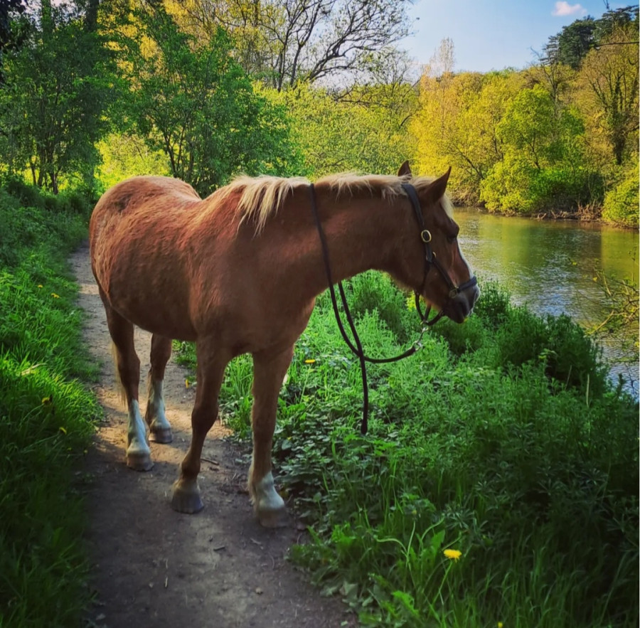 Harley lui, la forme ! Il adore ses petites balades en main ! On part entre 30min et jusqu'à max 1h30, seulement au pas et sans cavalier of course !