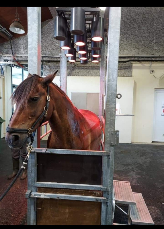 La boiterie est bien due à l'arthrose, un mixe cervicale basse à droite et boulet antérieur droit donc forcément le combo fait boiter. Faire une infiltration dans le boulet, pas la peine dans son cas ça ne servirait à rien... Alors on va tenter de la simple crème chauffante, qui peut avoir un bel effet, à voir ! Il a également eu du laser sur les lombaires, cervicales basses et boulet pour le soulager un peu.
