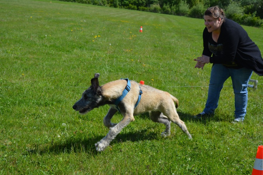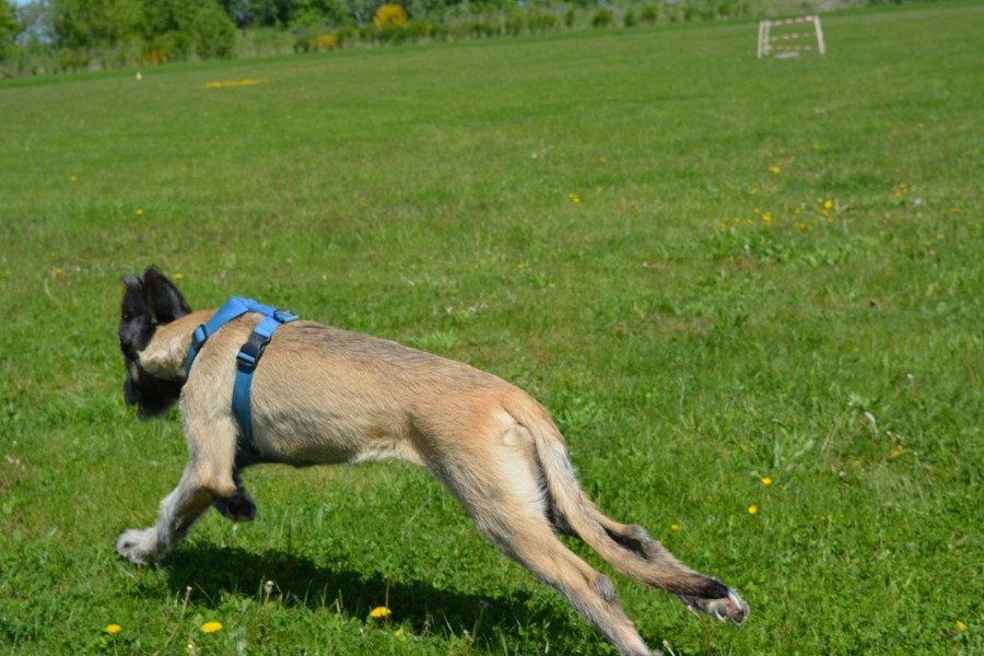 J'ai la chance d'avoir choisi un chien de taille et poids moyen ( voir léger mais le squelette est fort) 87 cm pour 59 kg actuellement et surtout extrêmement motivé par le leurre.