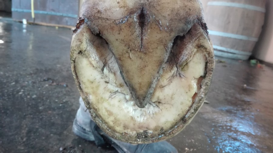 Il est pieds nus et à une super corne qui pousse très vite (parage toute les 4 semaines et il y a du boulot).