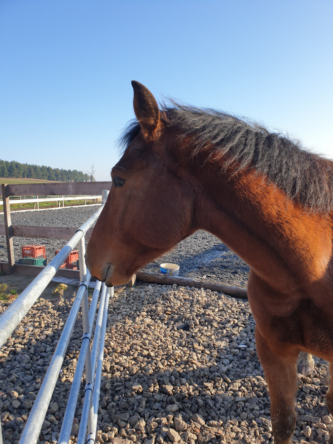 Il est toujours aussi peu enclin à bosser, même pour aller en extérieur il tire la tronche. Non vraiment je ne sais pas quoi faire avec lui, alors je sais bien qu'un couple cavalier/cheval ça met du temps à se former, mais là j'ai du mal.
