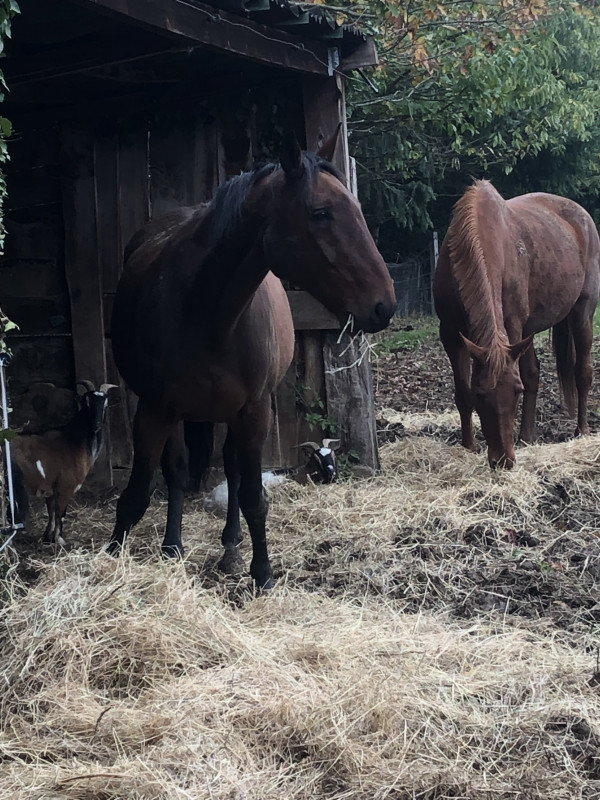 Et comme le pré est loiiiin (au moins 5 minutes de marche ;) ) quand il n'a pas trop bossé on s'offre le luxe de faire le retour à cru, comme une feignasse.