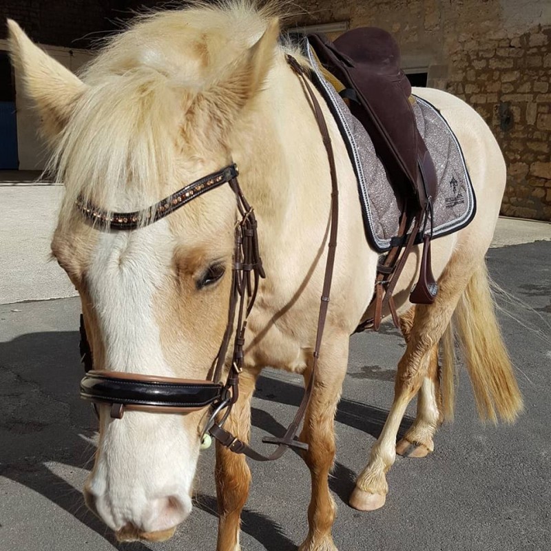 Un vrai sellier fabrique un frontal plat qui a vraiment une forme de vague, et ne devient droit que si on tire très fort dessus.