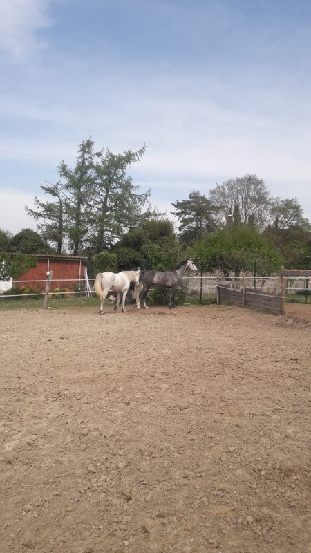 - au paddock non il n'est pas amorphe du tout, il est content. Jusqu'à présent il était seul au paddock car j'avais trouvé personne de déferré des postérieurs (mais paddocks avec autres chevaux juste à côté, à gauche, à droite, devant, derrière donc contacts avec les autres), mais c'était déjà une amélioration puisqu'avant septembre il n'était sorti au paddock qu'une heure par jour sans copain autour. Mais je lui ai trouvé un copain depuis 1 semaine, ils ont l'air de bien s'entendre.