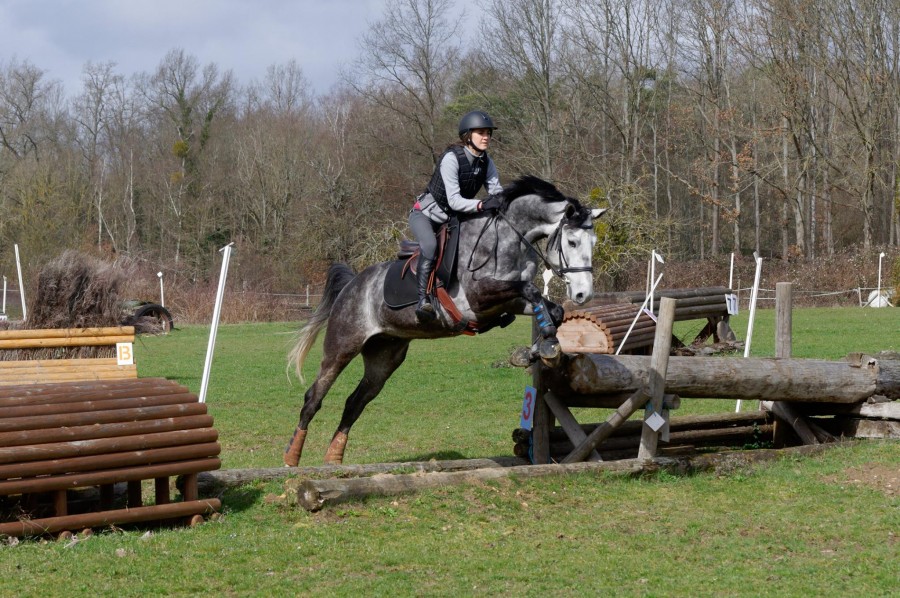 - puis CCE, s'est bien passé tout au long de la journée malgré coups de cul au galop lors de la détente de saut, mais nous avons glissé sur le cross, sans pour autant toucher le sol. Je me suis arrêtée pour voir s'il était blessé et, voyant que non, j'ai continué. Il s'est toutefois arrêté/bloqué sur le gué par peur, j'ai abandonné ;