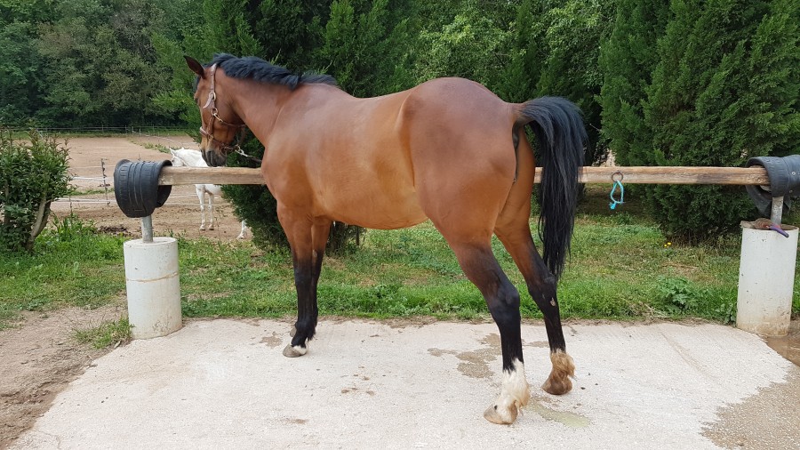 Dimanche, je l'ai longuement marché en main, et lundi je l'ai monté avec objectif : s'étirer, donc au pas, puis au trot puis j'ai tenté le galop aussi. Seulement, même problème... donc je n'ai pas insisté et ai finit par une longue marche rêne longue autour de l'écurie.