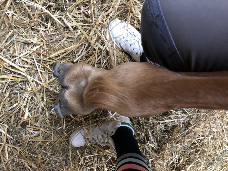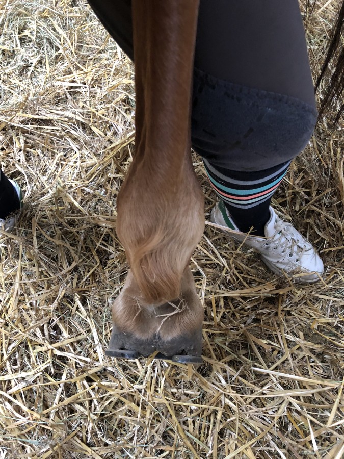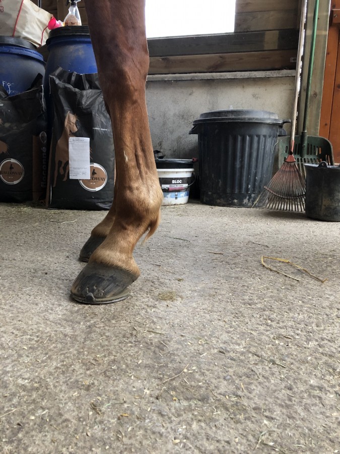 Et pour les postérieurs soulevés, ce qui aide, c'est de prendre le postérieur au milieu du canon et de le laisser pendre librement. Et là, tu vois si le pied est dans l'axe ou pas. Avec un cheval qui ne bouge pas, tu peux te permettre le luxe de poser le milieu du canon postérieur sur ton genou/cuisse et tu as les mains libre pour la photo.