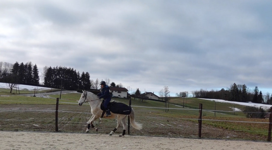 Et au trot et au galop juste des cercles et essayer de l'avoir dans une attitude et un rythme pas trop degeu, c'était compliqué haha
