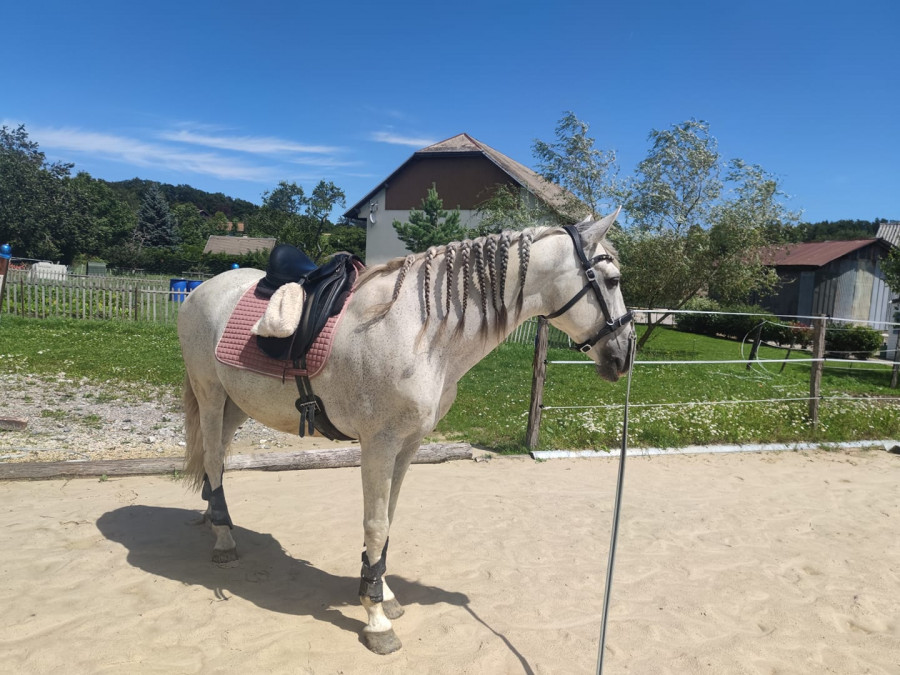 Au pas et au trot, juste prendre les sensations avec la bride, variation des attitudes, cercles, quelques transitions !