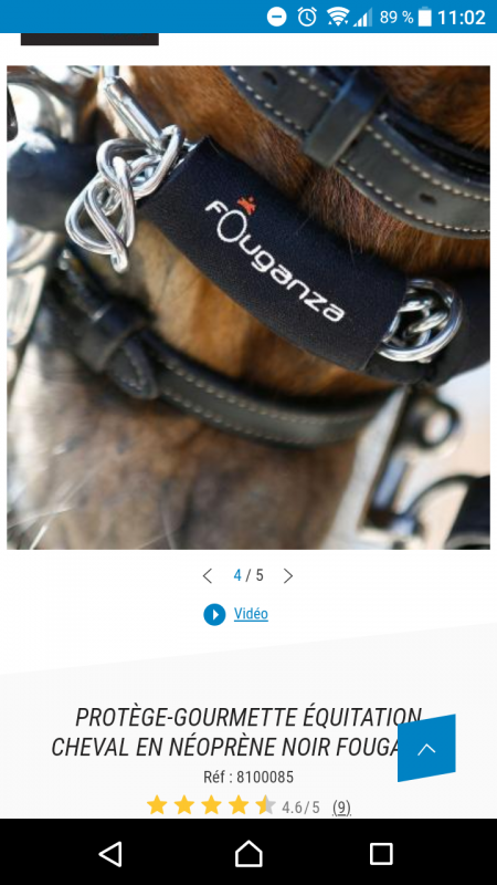 La gourmette est en chaine mais comporte une boule rouge au milieu que l'on cale entre les os de la machoire du cheval pour éviter qu'elle ne bouge latéralement.