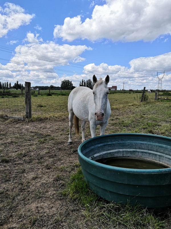 Le seul soucis à présent pour le pré, c'est que dans une pâture qu'il faut traverser il y a des chevaux qui vont toujours à notre rencontre, et qui veulent taper (ou que Bella veut taper s'ils rentrent dans ses fesses). Forcément ils ne se connaissent pas... Donc c'est un peu embêtant, je n'ai pas envie de me prendre un coup de pied. ^^'