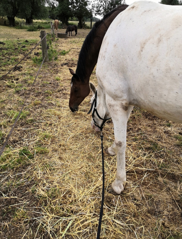 Et pourtant elle était en chaleur.. Retour en pâture, habituellement elle reste à côté de moi, là tayoooo vers une copine et elle lui a uriné au nez...