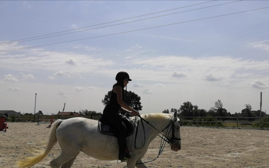 Puis on a repris tranquillement le trot, quelques figures de manège, puis le pas et repos...