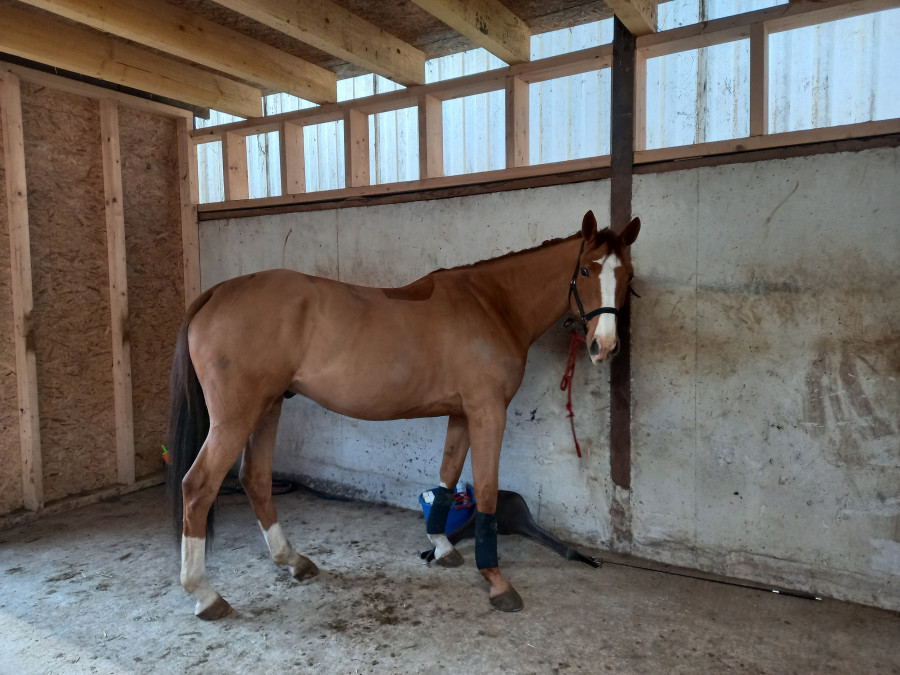 3 semaines après sa blessure, le pied de goupil était toujours chaud et la boiterie intermittente... j'ai donc décidé de le montrer au maréchal.