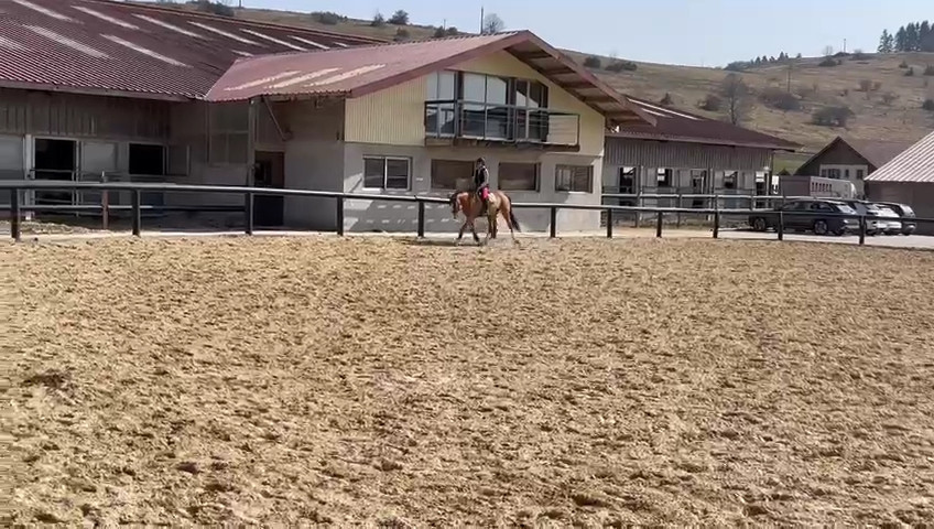 Pour l'instant j'essaie de faire des extensions d'encolure (sans dégradé son équilibre ce qui est compliqué) en début et fin de séance, partir en trotting en terrain varié et on va reprendre un peu la longe ( je n'aime pas ca) également.