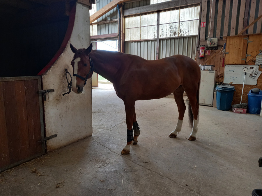 Au lendemain d'une séance d'obstacle qui s'était bien déroulée, sans mauvais saut, elle avait un antérieur un peu gonflé (au niveau du boulet). Au pas, RAS et au trot, forte boiterie.