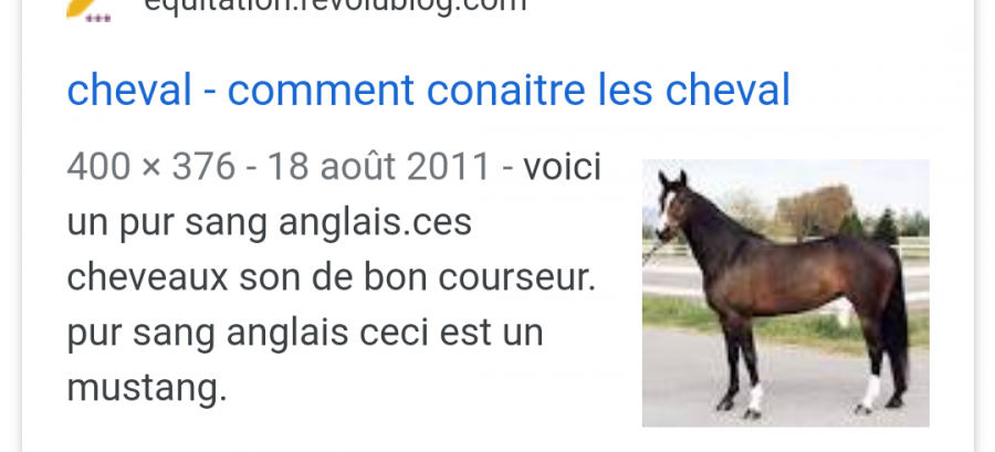 Désolée de vous re déranger mais j'aurais une fois de plus une petite question à vous poser. Sur google image je suis tombée sur la photo d'un cheval que je trouve magnifique, mais je n'arrive pas du tout à trouver sa race et à vrai dire je ne m'y connais pas du tout à ce sujet ( j'ai essayé de faire diverses recherches pour trouver où a été postée l'image en première, en vain )