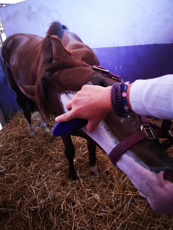 On s'arrange entre nous pour nourrir 3 fois par jour, curer les boxes 1 fois, faire encore un tour crottins, entraîner ceux qui doivent l'être et sortir/rentrer du pré les autres, faire les soins...