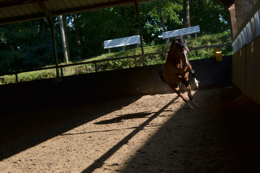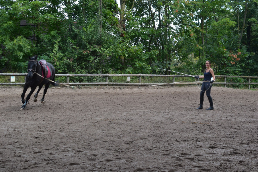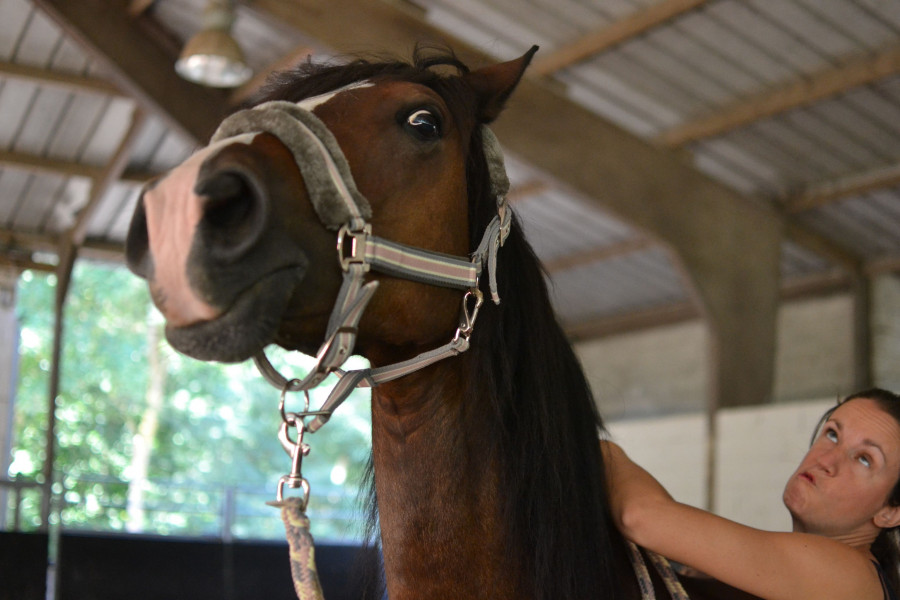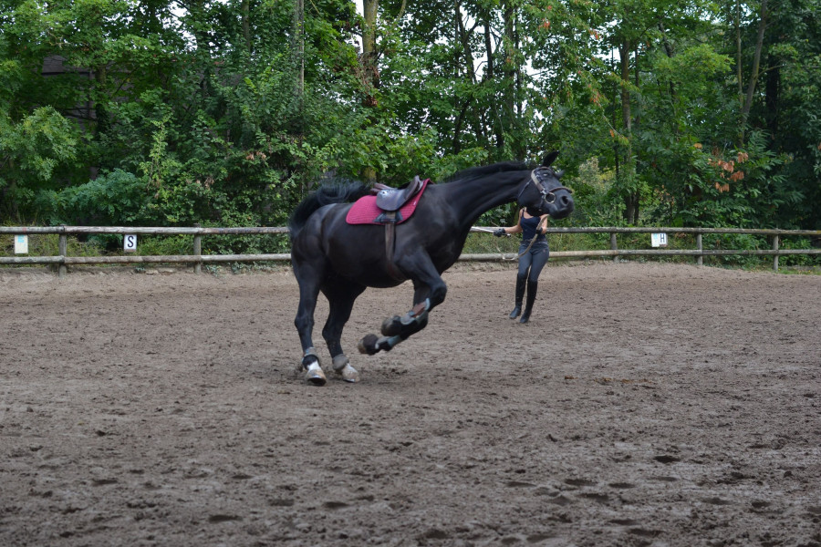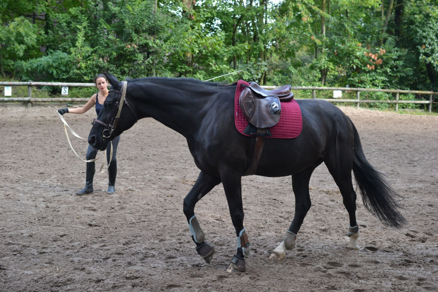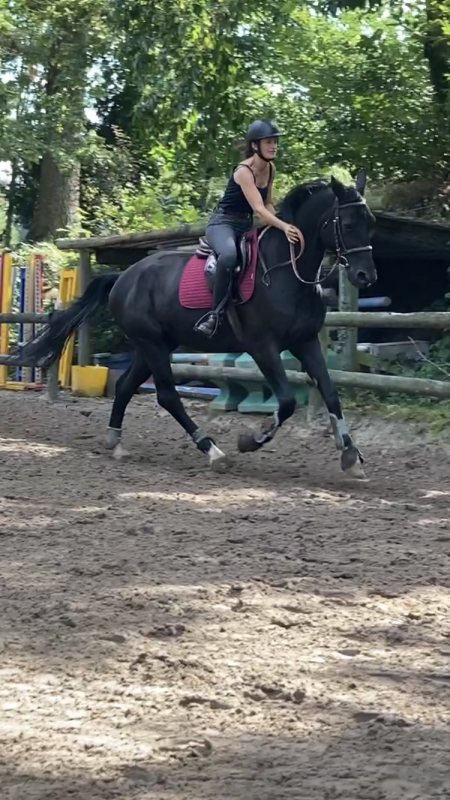 La première sur un PFS d'1m50 de 4 ans, dont la propriétaire s'occupait à peine : j'y allais 2 à 3 fois par semaine pour faire l'extérieur, du plat, de l'obstacle. Il était gentil mais plutôt ingérable, et le sortir 2 fois ne suffisait absolument pas à le cadrer. Elle l'a vendu sans m'en avertir.