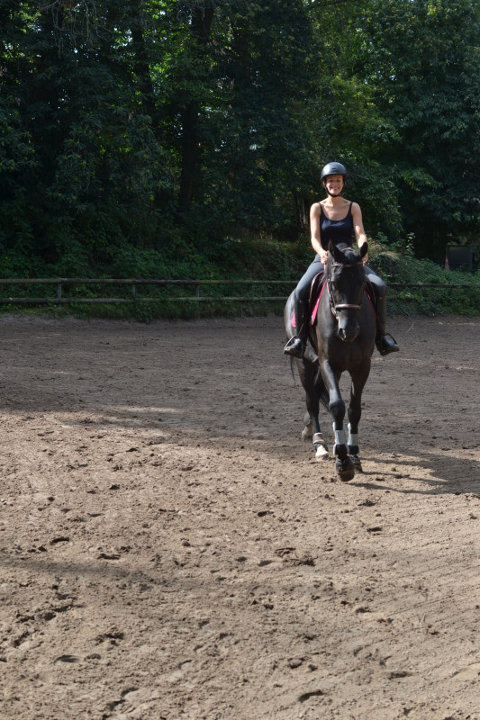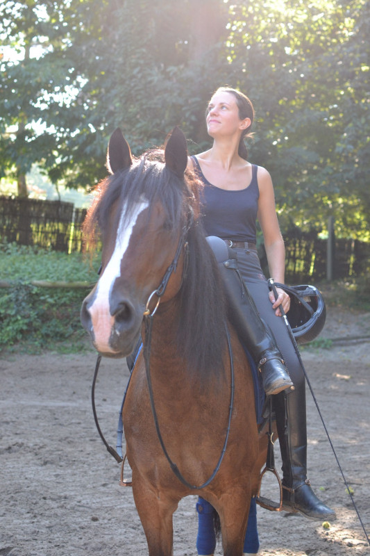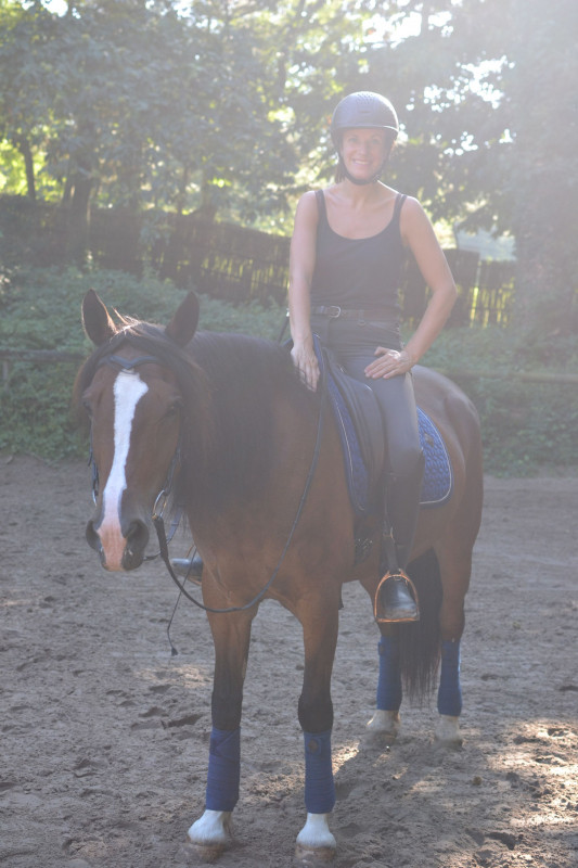 De mon côté : Pauline, j'ai 29 ans, et j'ai commencé l'équitation à 13 ans. Au début toute flippée, puis un peu plus à l'aise... J'ai passé mes 4 premiers galops les deux premières années, super fière de moi ! Puis j'ai échoué au 5 la troisième année et, vexée, j'en suis restée là. Mais on y reviendra...