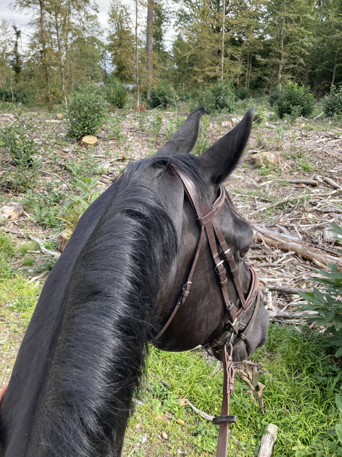 Ce matin tour en forêt avec les deux, Pharell a été exemplaire il m'en bouche un coin. Le mec a été débourré en rênes fixes, il a fait box-manège 3 fois par semaine pendant un an, et là il est comme un poisson dans l'eau, pépère. Il me bluff. Quel mental et quelle résilience !