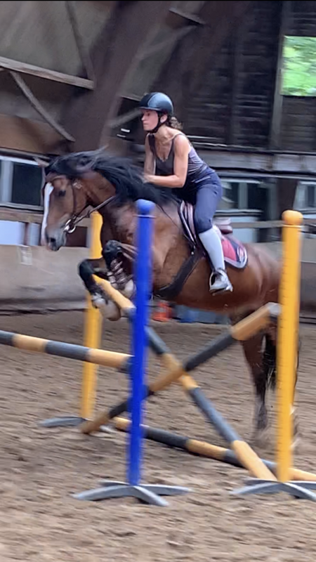 La seconde sur un grand SF de 15 ans, bon cheval de complet, pour faire du plat uniquement. Super cheval d'école, j'ai beaucoup appris grâce à lui.