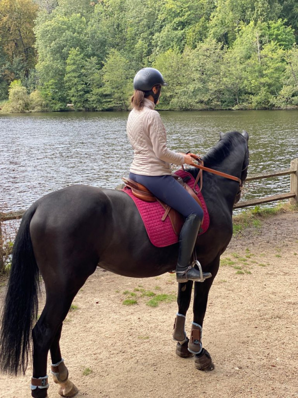 Si j'avais un seul reproche à faire, c'est sur quelques transitions descendantes où il se lache un peu dans le dos, mais c'est si vraiment on veut pinailler! (pas toutes hein, mais certaines) et quelques départ au galop où il part en mode char d'assaut, mais ça je pense que dans un mois, c'est réglé!