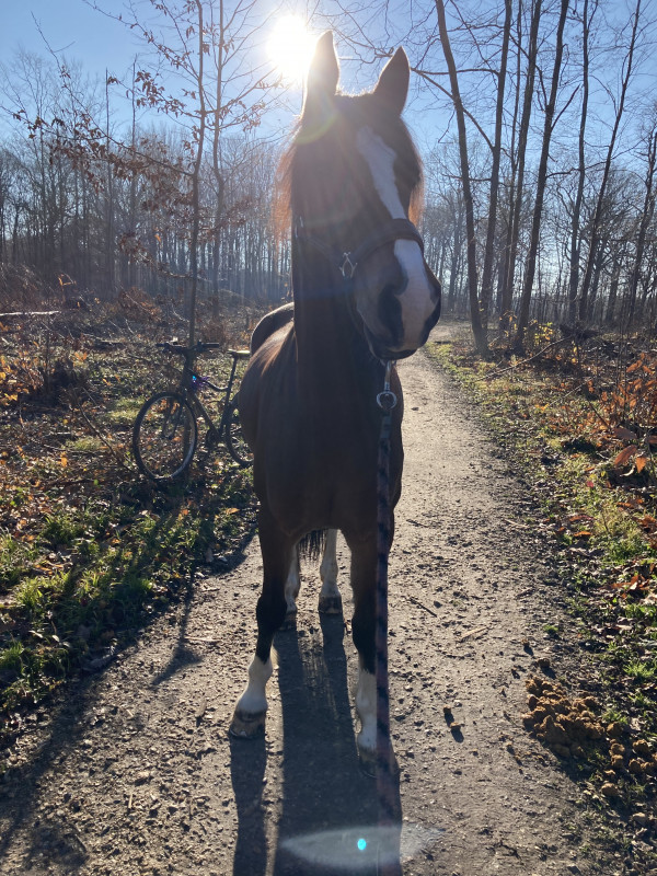 J'ai cherché un cheval un peu partout, du bon coin jusqu'aux sites spécialisés en passant par facebook. C'est d'ailleurs là-dessus que j'ai trouvé. Après 7 essais, je suis tombée sur le bon. Avec le recul, je me dis que ça a été le coup de foudre. Sur le moment, je ne m'en suis pas rendu compte. Je suis d'un naturel plutôt réservé et je voulais éviter de m'emballer trop vite.