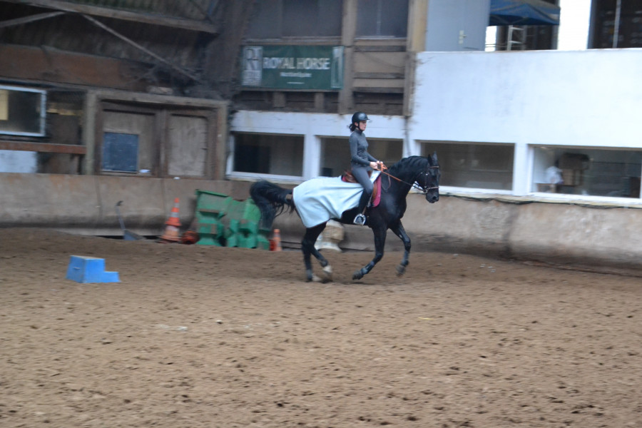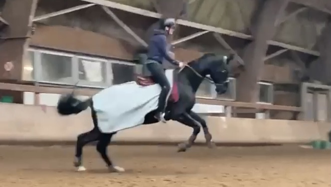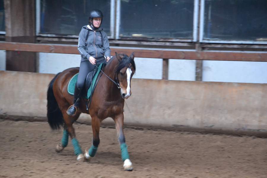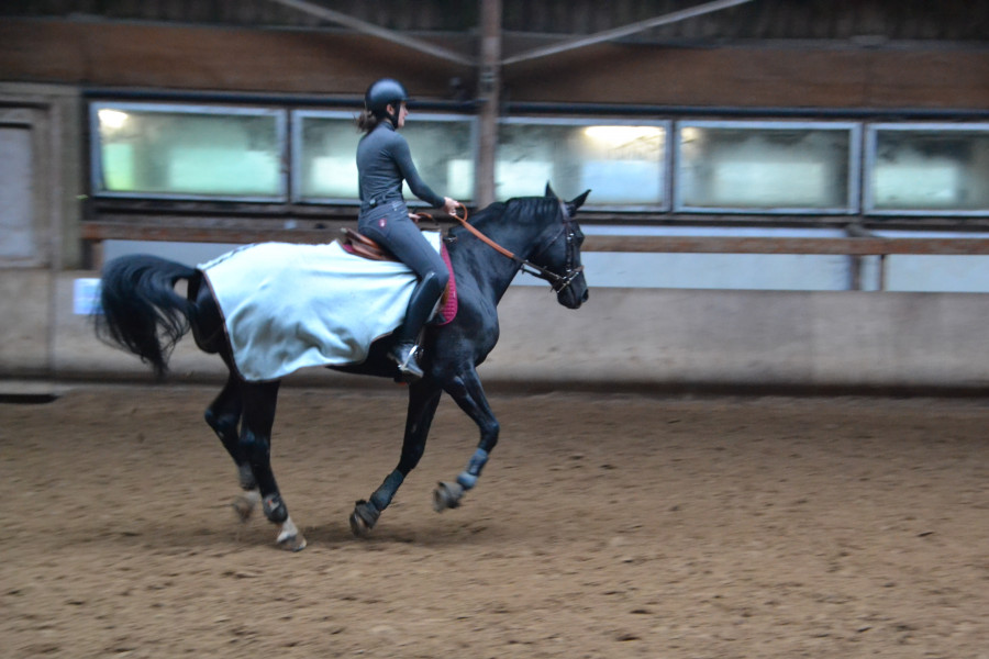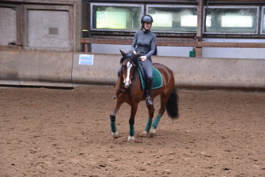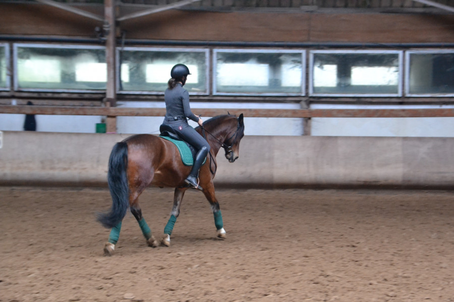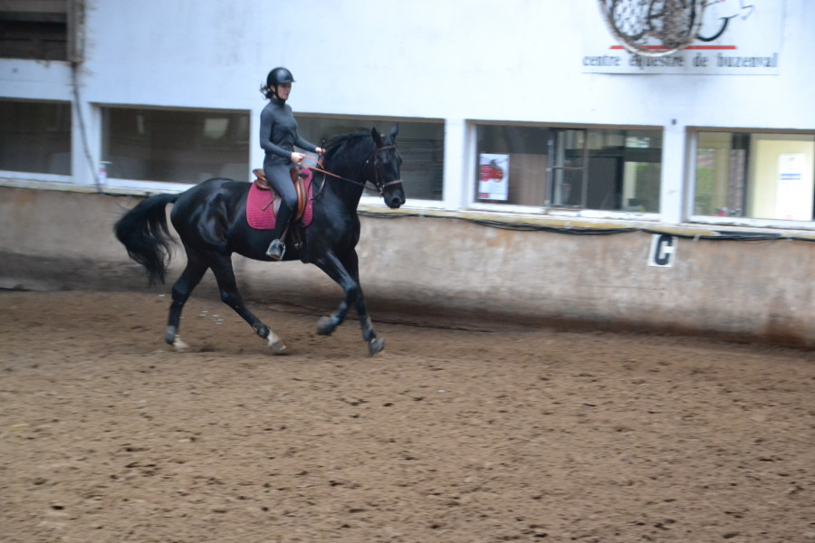 J'ai aussi monté Barrueco, qui était un peu tendu et raide (le froid ?). Grosse détente aux trois allures, transitions en cherchant la décontraction et le nez en bas, j'ai inclus un peu de deux pistes quand il montait en pression pour le canaliser. Gentil.