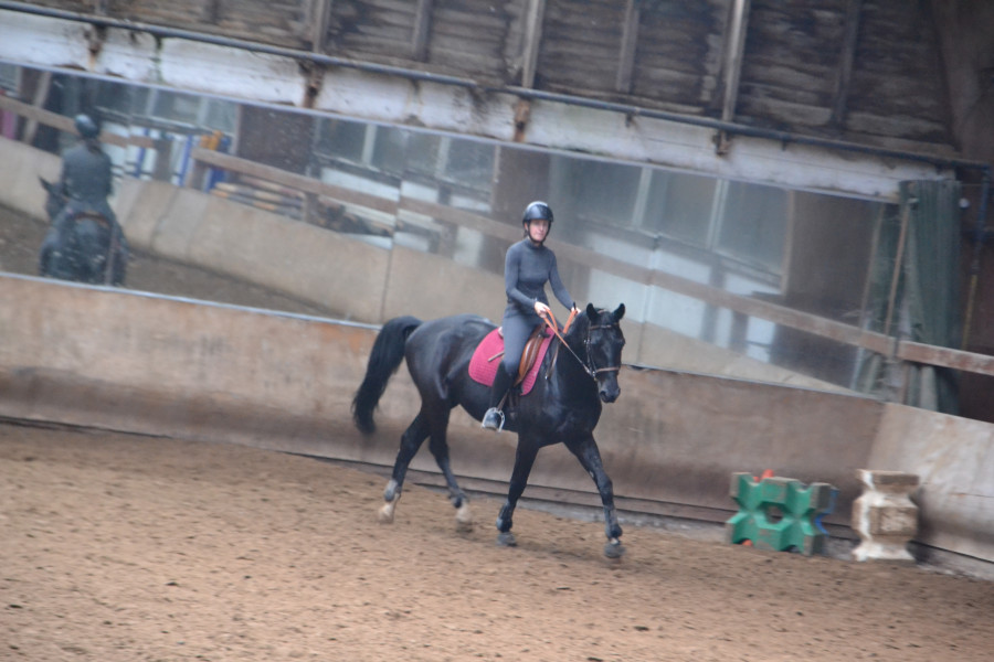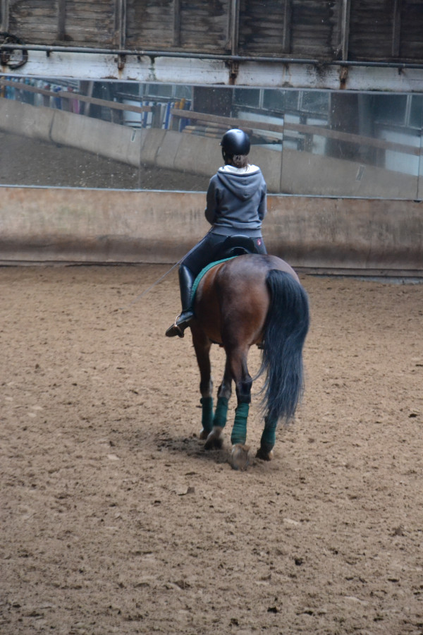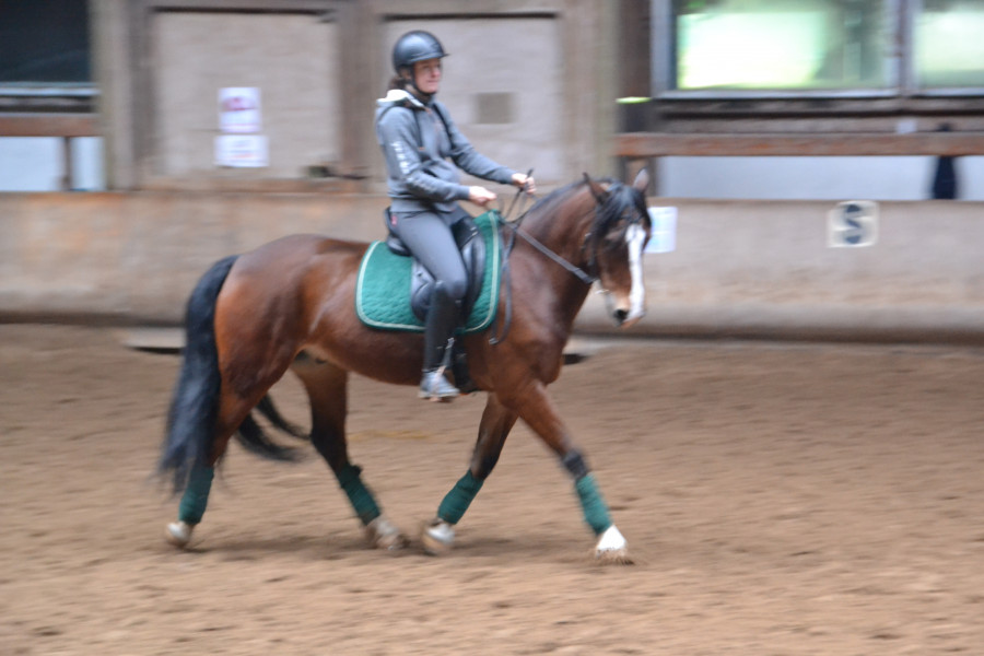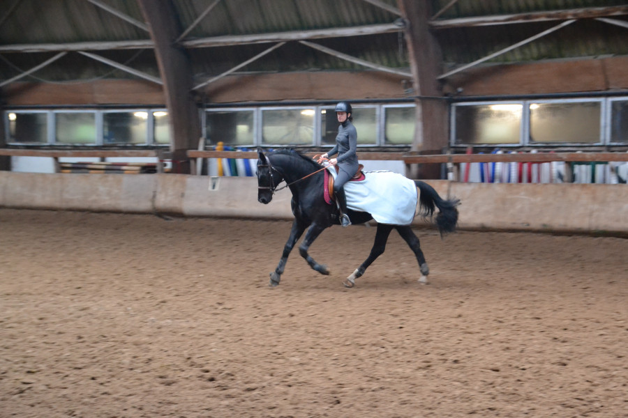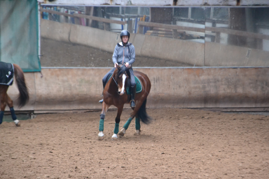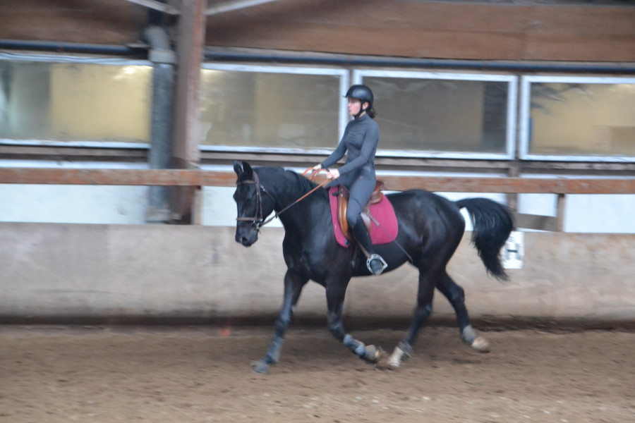 James, adorable amour. Séance courte avec des transitions, un peu les mêmes enchaînements que le grand frère en plus complexe et plus rapide. Bon poney. J'ai terminé en ramassant un cheval qui avait éjecté sa cavalière en cours. Oups.
