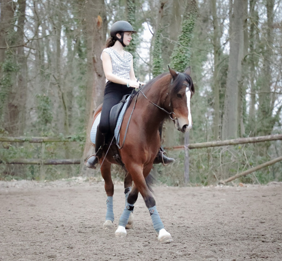 De mon côté : Pauline, j'ai 29 ans, et j'ai commencé l'équitation à 13 ans. Au début toute flippée, puis un peu plus à l'aise... J'ai passé mes 4 premiers galops les deux premières années, super fière de moi ! Puis j'ai échoué au 5 la troisième année et, vexée, j'en suis restée là. Mais on y reviendra...